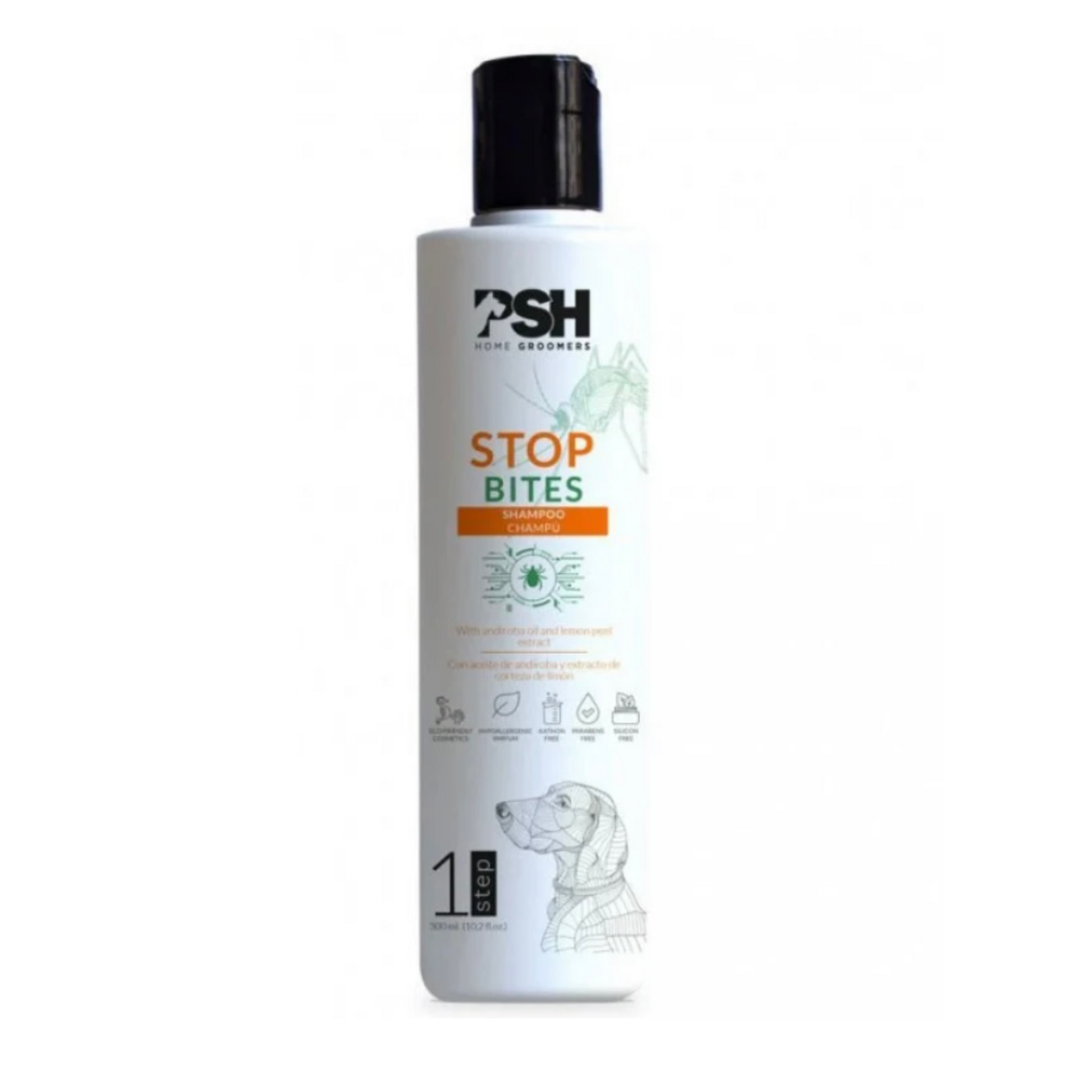 PSH STOP Bites šampoon sisaldab andiroba õli ja sidrunikoore ekstrakti, pakkudes loomulikku kaitset välistest parasiitidest. Andiroba õli toimib loodusliku tõrjevahendina ning niisutab, pehmendab ja rahustab nahka. Sidrunikoore ekstrakt tugevdab shampooni tõrjeefekti.