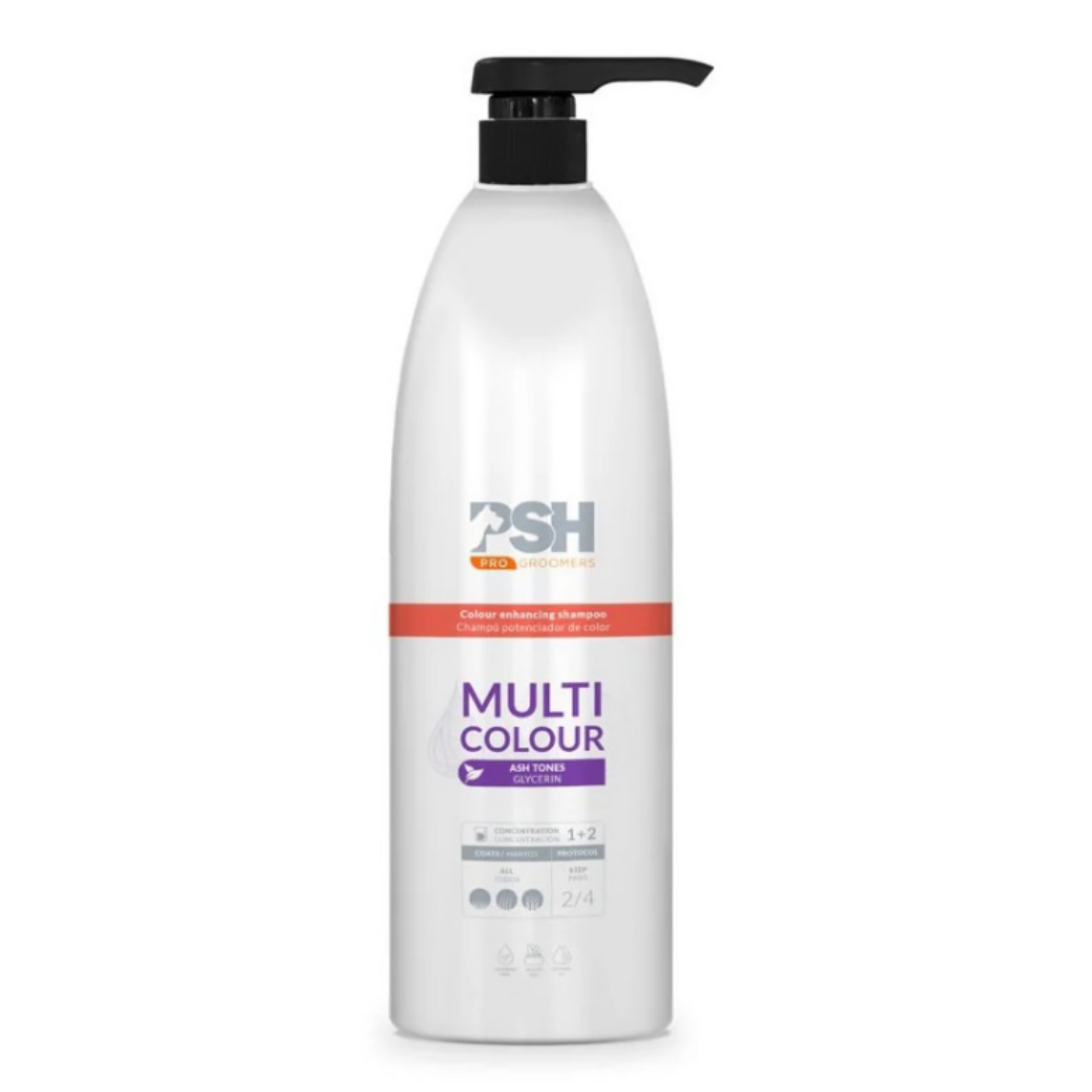 PSH šampoon on loodud karva värvi tugevdamiseks ja kaitseks tuhmumise vastu. Taastab õhukeste ja paksemate karvakiudude tekstuuri, jätab karva pehmeks, läikivaks ja värskelt lõhnavaks. Eemaldab kollasust valgetes karvapiirkondades, sobib erineva värvi ja karvatüübiga koertele.